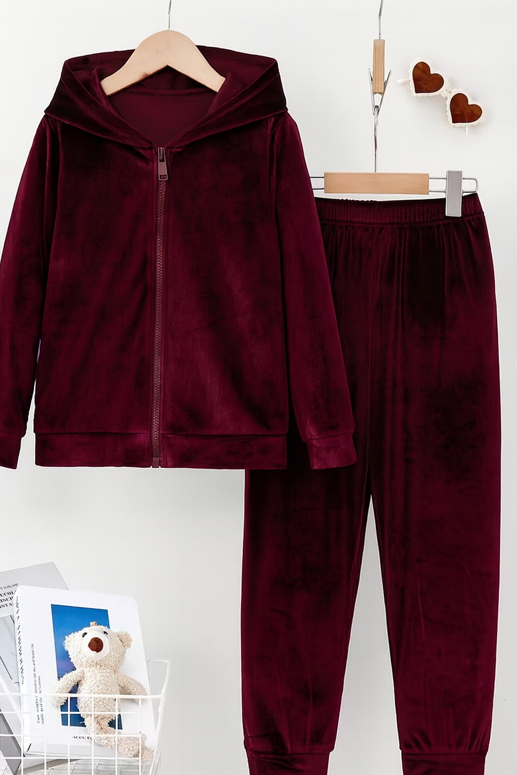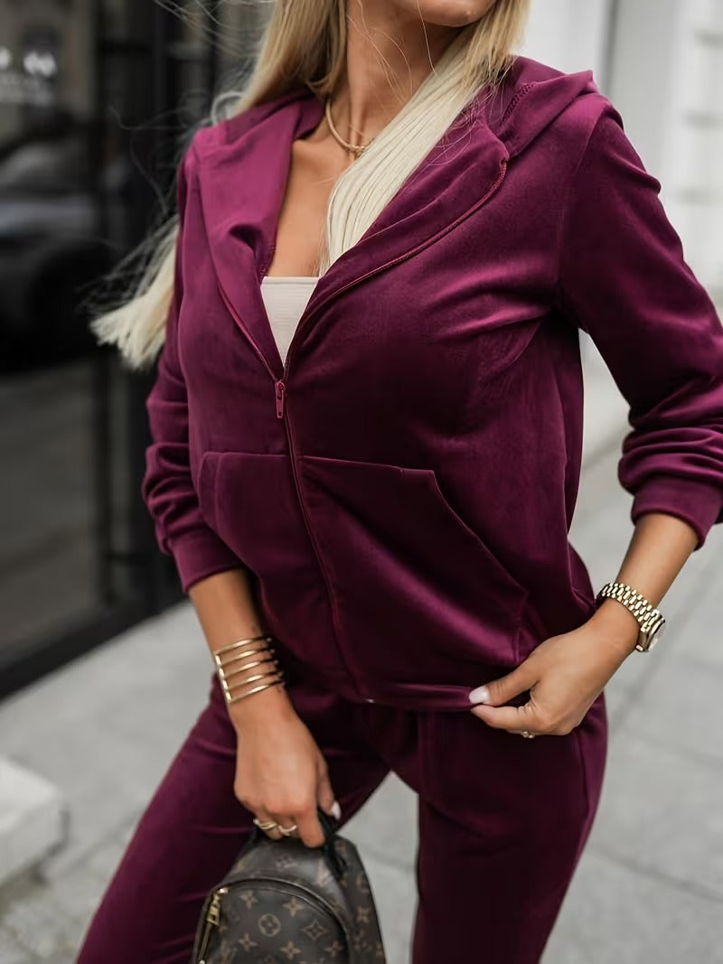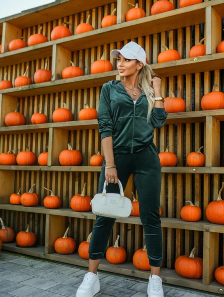 x.Trening Catifea cu Fermoar - Set 2 Piese: Hanorac + Pantaloni