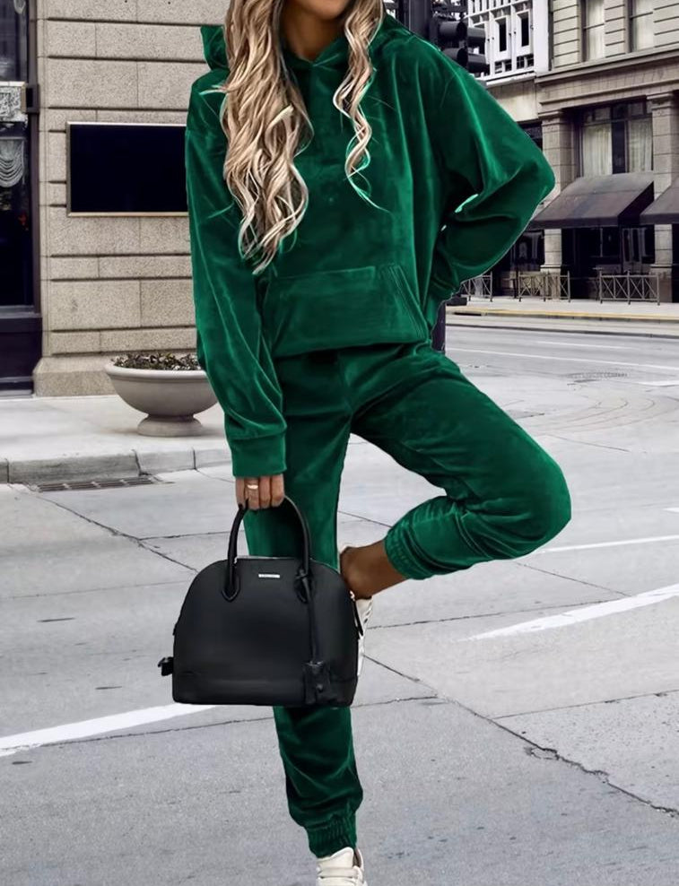 x. Trening Catifea Verde - Set 2 Piese: Hanorac + Pantaloni